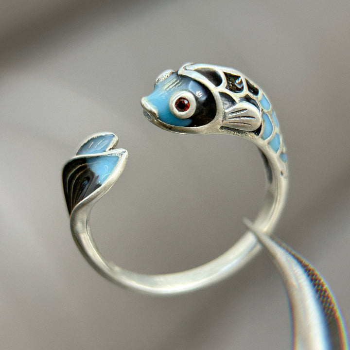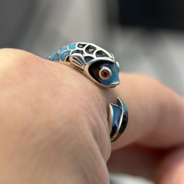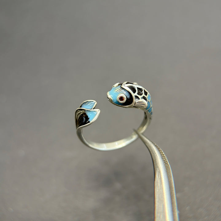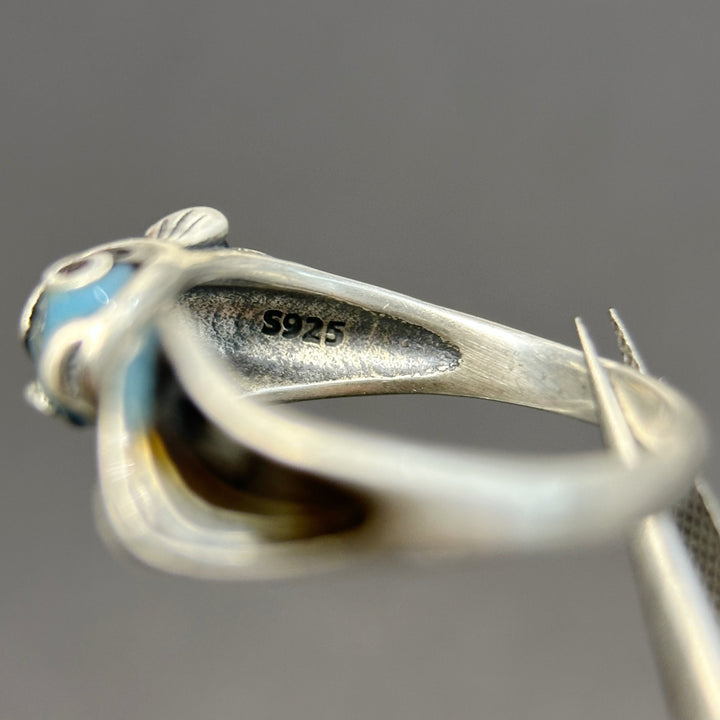 925 Sterling Silver Fish Ring, Enamel Crafted Size Adjustable, Innocent Little Fish