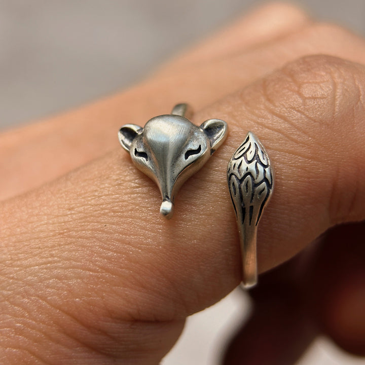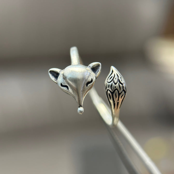 925 Sterling Silver Fox Ring is adjustable in size. Handmade. Ideal gift for him or her