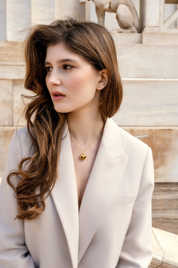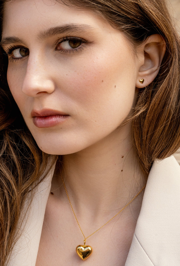Earthy, radiant, and full of soul — the Albi mini earrings carry an elegant heart design reflecting a sacred symbol of self-love and connection, effortlessly within your story, your energy as well as your personal journey. Bold yet effortlessly feminine, Albi is a love letter to your own strength, softness, and everything in between. A romantic statement. A personal promise. A full heart, worn proudly.