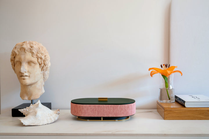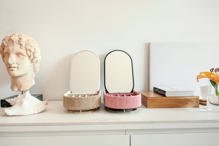 This jewelry box is built to last, with quality materials and careful craftsmanship. Choose Olive & Pink to match your style and blend with your vanity space’s decor.