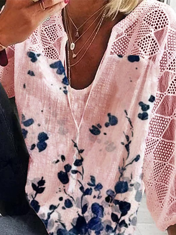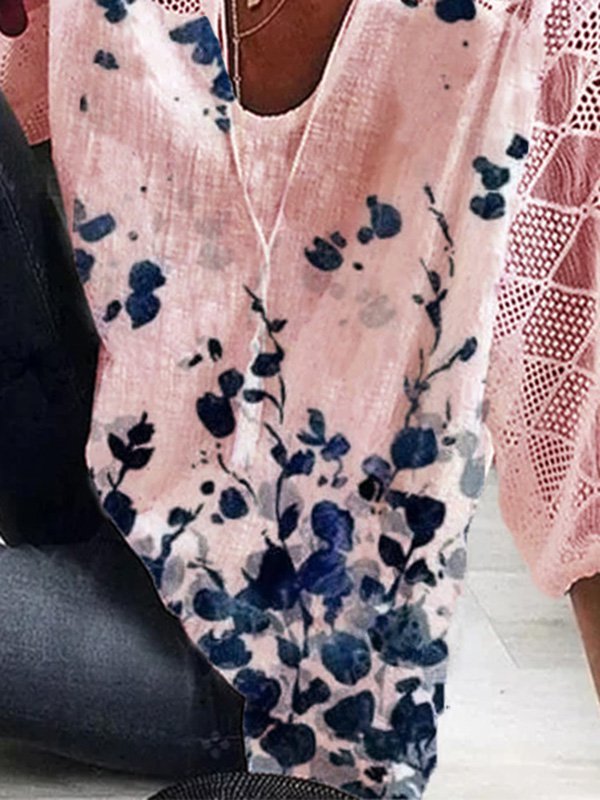 JFN Floral-Print 3/4 Sleeve Casual Tops