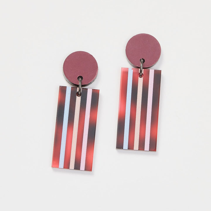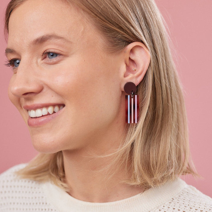 Crafted from tortoise shell acrylic we've add a playful twist on the traditional material with multi coloured stripes adding a fresh and colourful dimension to the earrings. This eye-catching combination creates a stylish accessory that seamlessly blends timeless elegance with contemporary flair. The earrings are lightweight making them a perfect choice for adding a pop of colour to your style and easy to wear all day.