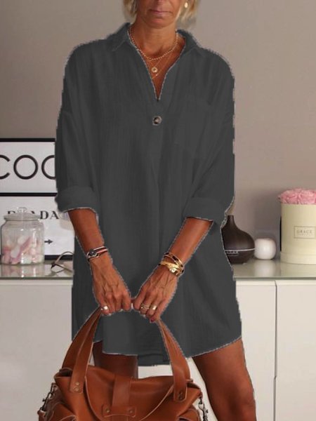 Modetalente Lässig V-Ausschnitt Baumwolle Unifarben Kleider