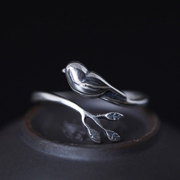 Bring a touch of nature's tranquility to your finger with this Bird - on - Branch silver ring. The sleek bird perched on a delicate branch is crafted with great precision, making it a beautiful and elegant accessory. Ideal for nature lovers and those who appreciate fine jewelry.