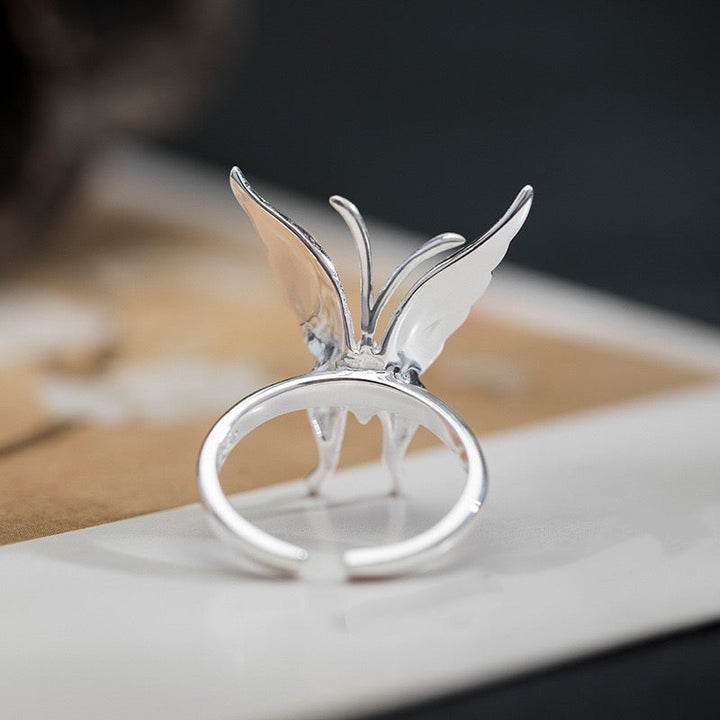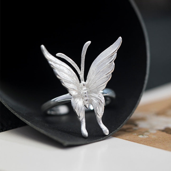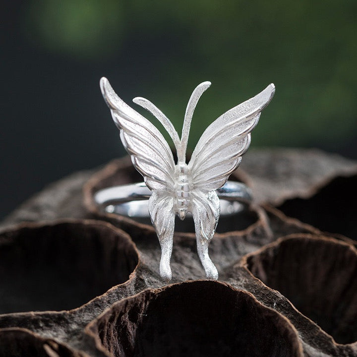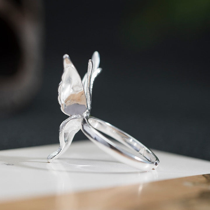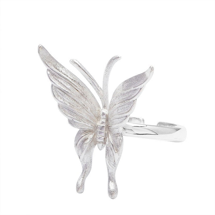 Let this silver butterfly ring add a touch of enchantment to your look. The detailed wings and body of the butterfly are expertly crafted into a stunning piece that symbolizes freedom and beauty. Ideal for those who love nature inspired jewelry.