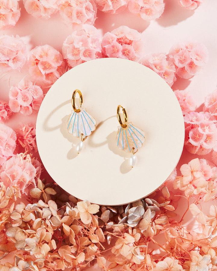 Our ocean themed pair of gorgeous shells with an elegant pearl are light and easy to wear with any outfit.