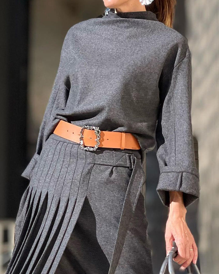 | Product Name | Round Neck Long Sleeve Top Pleated Skirt Two-Piece Set Excluding Belt | |||||