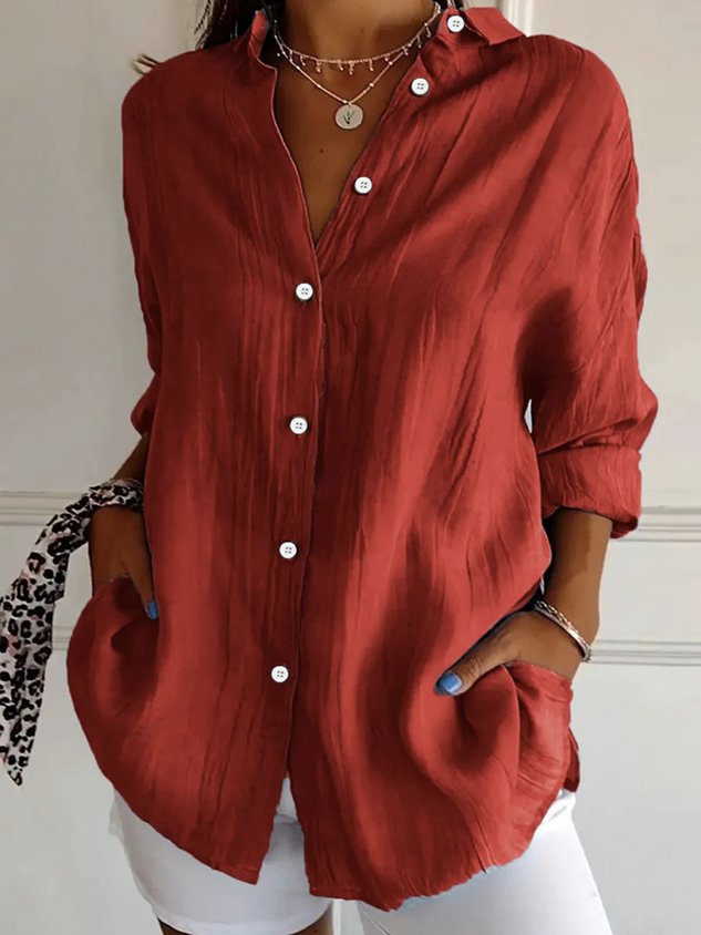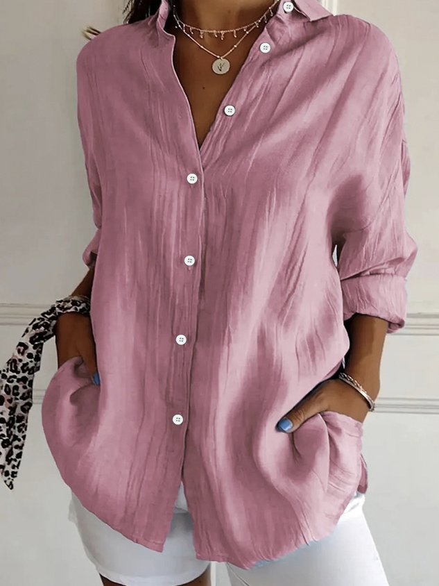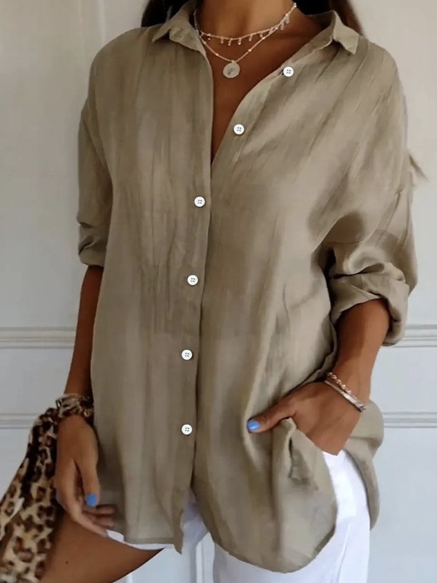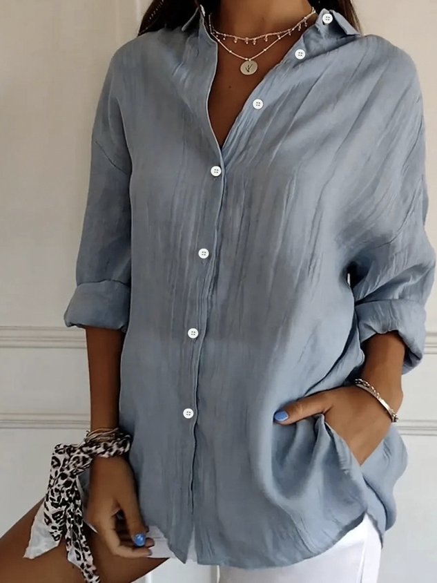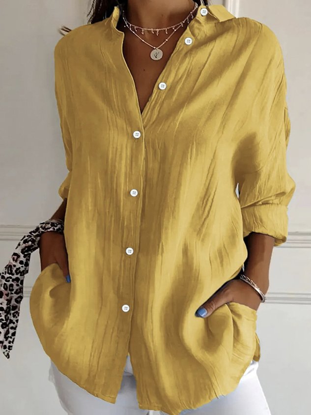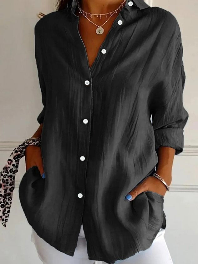 Women's Long Sleeve Shirt Spring/Fall Plain Cotton Shirt Collar Daily Going Out Casual Top Black
