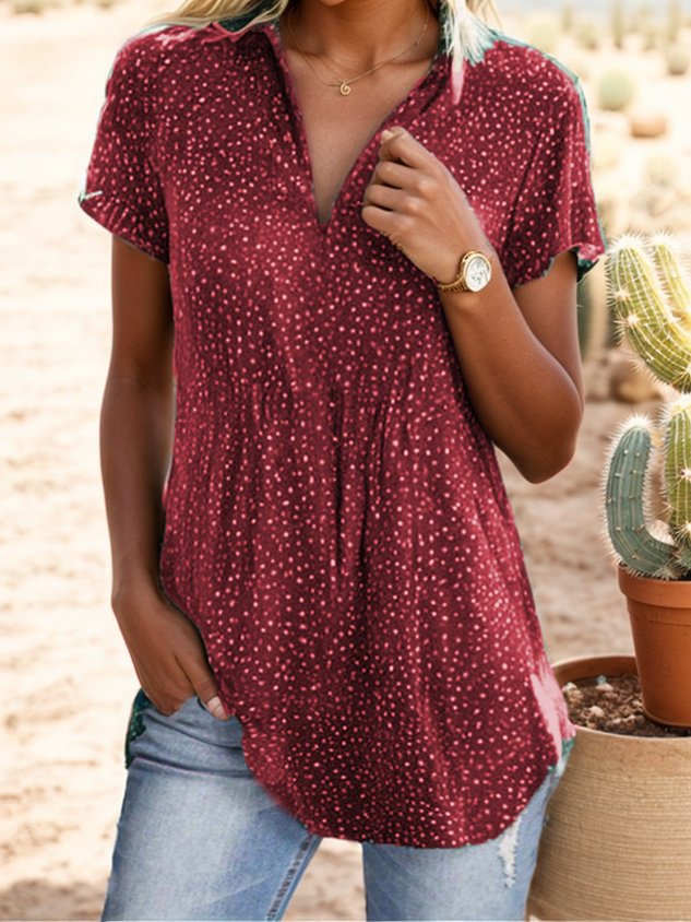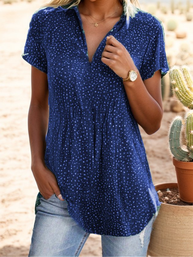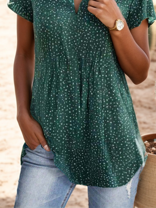 Women's Short Sleeve Blouse Summer Polka Dots Cotton Shirt Collar Daily Going Out Casual Top Green