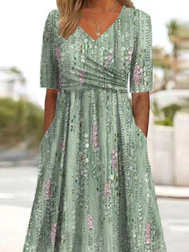 Women's Short Sleeve Summer Floral Cotton Crew Neck Daily Going Out Casual Maxi H-Line Green Dress