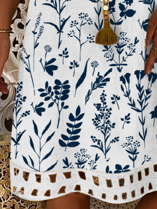 Women's Short Sleeve Summer Floral Dress V Neck Daily Going Out Simple Midi A-Line Blue