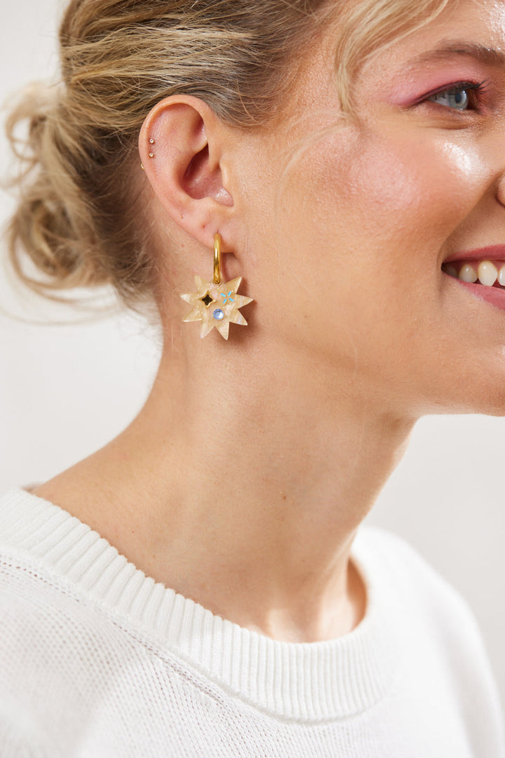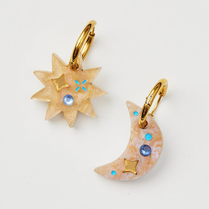 Embrace the cosmic charm with this playful duo – one featuring a sparkling star and the other a shimmering crescent moon. Adorned with twinkling motifs and a dazzling crystal inlay, these earrings add a touch of whimsy to your style. Embrace your individuality and let your accessories shine as bright as the stars themselves!