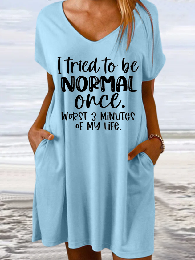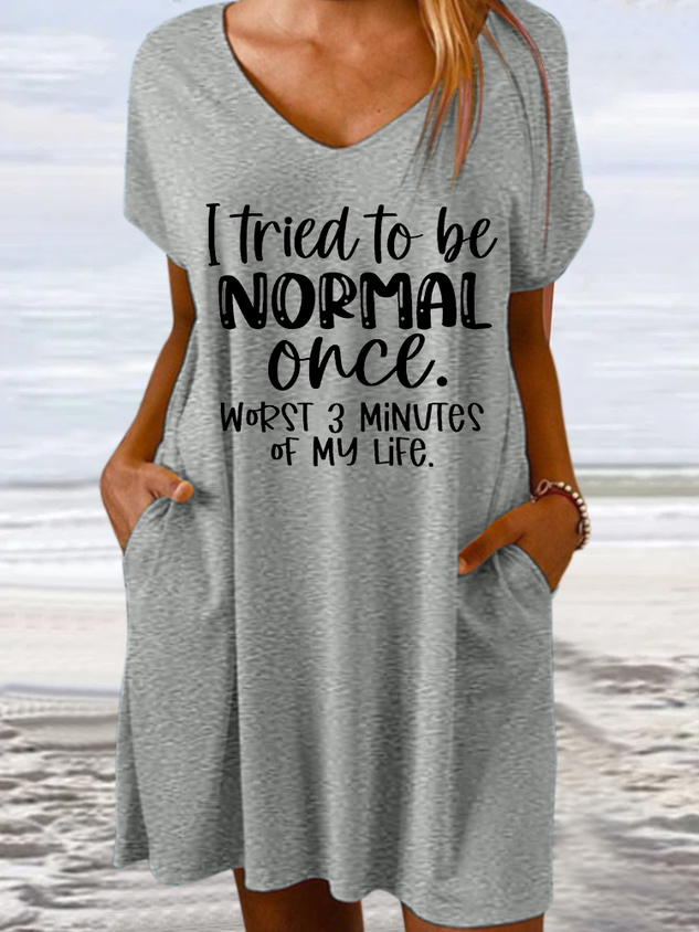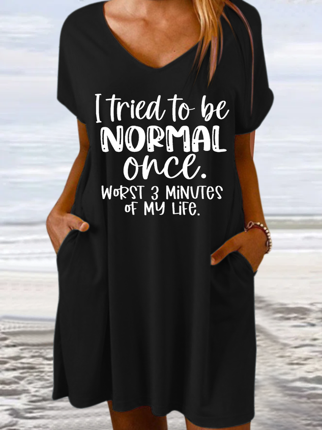 Damen LUSTIGES WORT Ich habe es versucht zu Sein normal Einmal Am schlimmsten 3 Protokoll der meine Leben Lässig V-Ausschnitt Textbriefe Kleid